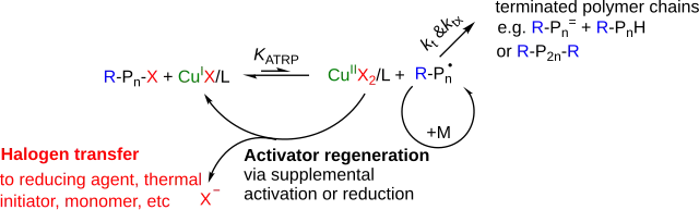 - ↑ Wang, Y; Kwak, Y; Buback, J; Buback, M; Matyjaszewski, K (2012). "Determination of ATRP Equilibrium Constants under Polymerization Conditions". ACS Macro Lett. 1 (12): 1367–1370. doi:10.1021/mz3005378.
