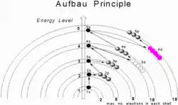 ![]() Electrons occupy the shells and sub-shells of an atom in approximate accordance with the Aufbau principle. |