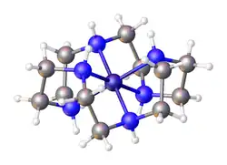 - ↑ Morooka, M.; Ohba, S.; Toriumi, K. (1992). "Electron-density distribution in crystals of 1,4,7,10,13,16-hexaazacyclooctadecanecobalt(III) trichloride, meso-[Co(hexaen)]Cl3 at 106 K". Acta Crystallographica Section B: Structural Science. 48 (4): 459–463. doi:10.1107/S0108768192002714.