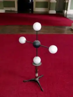 In 1865, German chemist August Wilhelm von Hofmann was the first to make ball-and-stick molecular models. He used such models in lecture at the Royal Institution of Great Britain.