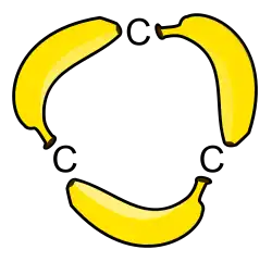 In organic chemistry, a bent bond, also known as a banana bond, is a type of covalent chemical bond with a geometry somewhat reminiscent of a banana. The term itself is a general representation of electron density or configuration resembling a similar "bent" structure within small ring molecules, such as cyclopropane (C3H6) or as a representation of double or triple bonds within a compound that is an alternative to the sigma and pi bond model.