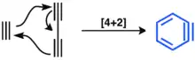 A hexadehydro Diels-Alder reaction (HDDA) involves cycloaddition of 1,3-diyne and alkyne.[16]