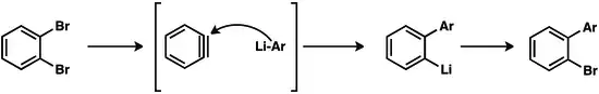 Wittig et al. invoked zwitterionic intermediate in the reaction of fluorobenzene and phenyllithium to give biphenyl.[41][42][43] This hypothesis was later confirmed.[44][45][46][47][48]