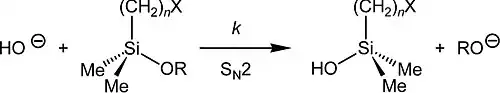 - ↑ Berkefeld, André; Guerra, Célia Fonseca; Bertermann, Rüdiger; Troegel, Dennis; Daiß, Jürgen O.; Stohrer, Jürgen; Bickelhaupt, F. Matthias; Tacke, Reinhold (2014-06-09). "Silicon α-Effect: A Systematic Experimental and Computational Study of the Hydrolysis of C α - and C γ -Functionalized Alkoxytriorganylsilanes of the Formula Type ROSiMe 2 (CH 2 ) n X (R = Me, Et; n = 1, 3; X = Functional Group)". Organometallics. 33 (11): 2721–2737. doi:10.1021/om500073m. ISSN 0276-7333.