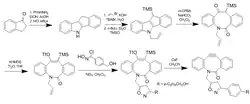 - ↑ Jewett, John C.; Bertozzi, Carolyn R. (2011). "Synthesis of a fluorogenic cyclooctyne activated by Cu-free click chemistry". Organic Letters. 13 (22): 5937–9. doi:10.1021/ol2025026. PMC 3219546. PMID 22029411.
