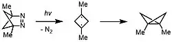 A 1,3-dimethyl substituted derivative in the triplet state was detected by electron paramagnetic resonance spectroscopy; the diradical species was generated via irradiation of the precursor diazo compound below 25 K in a solid matrix (Figure 4).[21][22] However, the all-carbon cyclobutane-1,3-diyl is very short-lived and quickly reacts to form the bicyclobutane isomer.