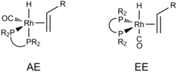 One intermediate, [Rh(H)(alkene)(CO)L], exists in two different isomers, depending on the position of phosphine ligands (Figure 4).[9]
