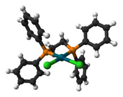The bite angle of a diphosphine ligand also indicates the distortion from the ideal geometry of a complex based on VSEPR models. Octahedral and square planar complexes prefer angles near 90° while tetrahedral complexes prefer angles near 110°. Since catalysts often interconvert between various geometries, the rigidity of the chelate ring can be decisive.[8] A bidentate phosphine with a natural bite angle of 120° may preferentially occupy two equatorial sites in a trigonal bipyramidal complex whereas a bidentate phosphine with a natural bite angle of 90° may preferentially occupy apical-equatorial positions.[9] Diphosphine ligands with bite angles of over 120° are obtained using a bulky, stiff diphosphine backbones.[8] Diphosphines of wide bite angles are used in some industrial processes.