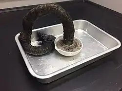 A long snake-like shape of carbon formed during the experiment