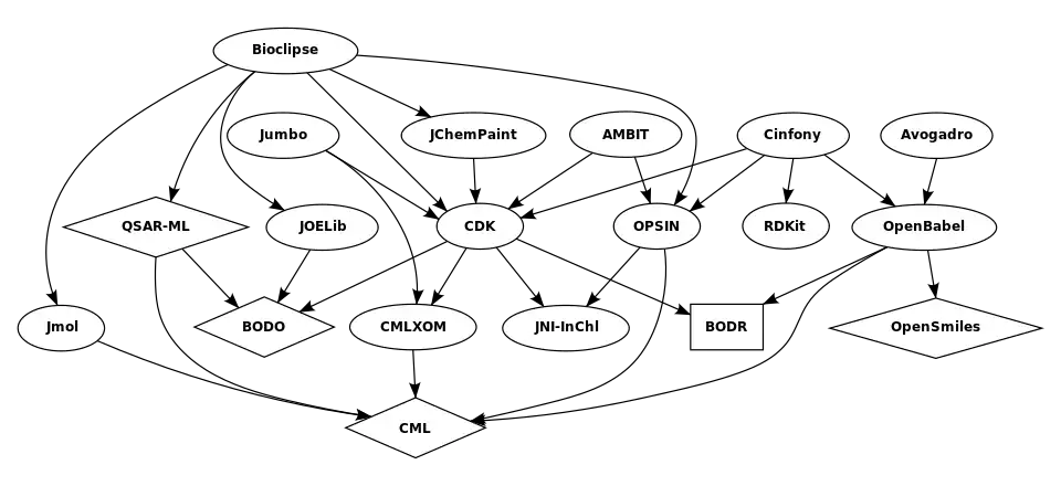 - ↑ Guha, R; Howard, MT; Hutchison, GR; Murray-Rust, P; Rzepa, H; Steinbeck, C; Wegner, J; Willighagen, EL (2006). "The Blue Obelisk-interoperability in chemical informatics". Journal of Chemical Information and Modeling. 46 (3): 991–8. doi:10.1021/ci050400b. PMC 4878861. PMID 16711717.