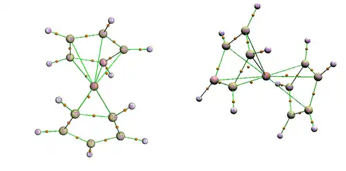 - 1 2 3 4 5 6 Sindlinger, Christian P.; Ruth, Paul Niklas (2019). "A Neutral "Aluminocene" Sandwich Complex: η1- versus η5-Coordination Modes of a Pentaarylborole with ECp* (E=Al, Ga; Cp*=C5Me5)". Angewandte Chemie International Edition. 58 (42): 15051–15056. doi:10.1002/anie.201907749. ISSN 1521-3773. PMC 6856865. PMID 31390132.
