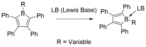 The parent unsubstituted compound with the chemical formula C4H4BH has yet to be isolated outside a coordination sphere of transition metals.[2] Substituted derivatives, which have been synthesized, can have various substituents at the 4 carbons and boron.[3] The high electron deficiency leads to various reactivities such as metal free hydrogen activation and rearrangements upon cycloaddition which are unobserved in other structural analogues like pyrrole or furan.