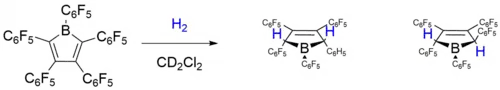 - ↑ Fan, Cheng; Mercier, Lauren G.; Piers, Warren E.; Tuononen, Heikki M.; Parvez, Masood (2010-07-21). "Dihydrogen Activation by Antiaromatic Pentaarylboroles". Journal of the American Chemical Society. 132 (28): 9604–9606. Bibcode:2010JAChS.132.9604F. doi:10.1021/ja105075h. ISSN 0002-7863. PMID 20583845.