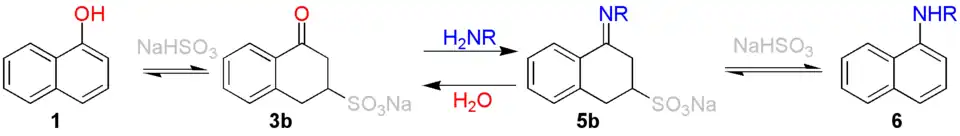 The reaction is used to convert 1,7-dihydroxynaphthalene into 7-amino-1-naphthol and 1-aminonaphthalene-4-sulfonic acid into 1-hydroxynaphthalene-4-sulfonic acid. It is also useful for transamination reactions of 2-aminonaphthalenes.[6]
