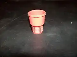 A rubber septum. The top folds over the neck of a flask to give an airtight seal
