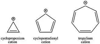 Another aromatic carbenium ion is the cyclopropenyl or cyclopropenium ion, C