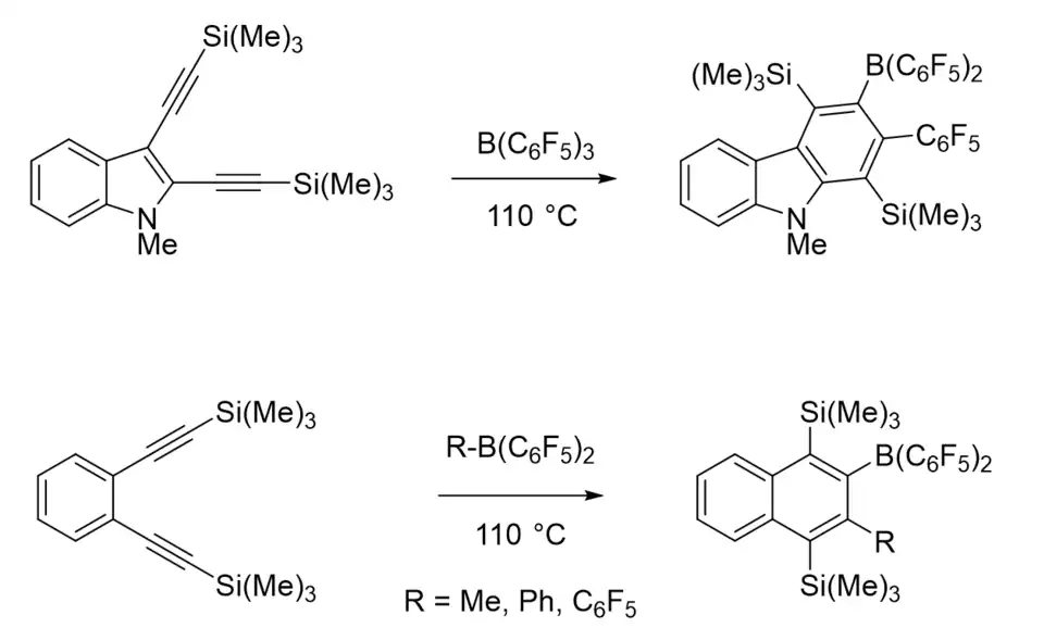 - ↑ Wrackmeyer, B.; Kehr, G.; Suß, J.; Molla, E. (1999). "1,1-Organoboration of tetraynes—routes to new siloles, stannoles and fused heterocycles". Journal of Organometallic Chemistry. 577: 82. doi:10.1016/S0022-328X(98)01029-8.