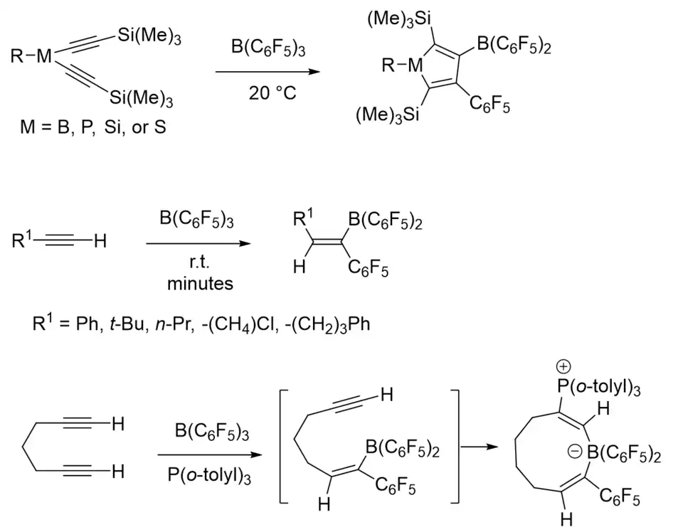 - 1 2 Kehr G.; Erker, G. (2016). "Advanced 1,1-carboboration reactions with pentafluorophenylboranes". Chemical Science. 7 (1): 56–65. doi:10.1039/c5sc03282b. PMC 5508682. PMID 28757997.