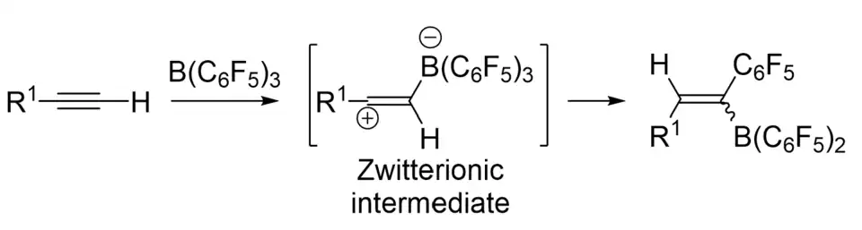 - 1 2 Bismuto, A.; Thomas, S. P.; Duarte, F; Cowley, M. J. (2012). "Characterization of the Zwitterionic Intermediate in 1,1-Carboboration of Alkynes". Chemical Communications. 48 (13): 1839–1850. doi:10.1039/C1CC15628D. PMID 22116402.
