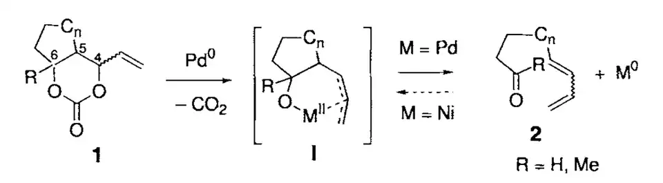 - ↑ Harayama, Hiroto; Kuroki, Toshitsugu; Kimura, Masanari; Tanaka, Shuji; Tamaru, Yoshinao (1997-11-14). "Synthesis of Doubly Unsaturated Aldehydes and Ketones by a Novelβ-Decarbopalladation". Angewandte Chemie International Edition in English. 36 (21): 2352–2354. doi:10.1002/anie.199723521. ISSN 0570-0833.