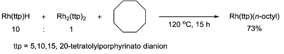 In addition, the metalloradical has also been proven to have the ability to cleave the C–C single bond. Chan group reported the C–C bond scission of cyclooctane via 1,2-addition with Rh(III) porphyrin hydride, which involved [RhII(ttp)]· radical as the key intermediate.[8]