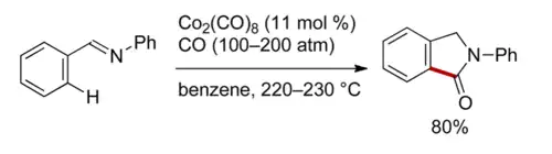 Chelation-assisted C-H activations are prevalent. Shunsuke Murahashi reported a cobalt-catalyzed chelation-assisted C-H functionalization of 2-phenylisoindolin-1-one from (E)-N,1-diphenylmethanimine.[4]