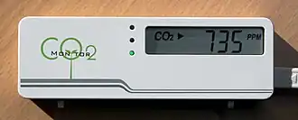 A carbon dioxide sensor or CO2 sensor is an instrument for the measurement of carbon dioxide gas. The most common principles for CO2 sensors are infrared gas sensors (NDIR) and chemical gas sensors. Measuring carbon dioxide is important in monitoring indoor air quality,[1] the function of the lungs in the form of a capnograph device, and many industrial processes.