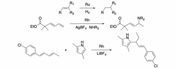- 1 2 3 Goldfogel, Matthew; Roberts, Courtney; Meek, Simon (2014). "Intermolecular Hydroamination of 1,3-Dienes Catalyzed by Bis(phosphine)carbodicarbene-Rhodium Complexes". Journal of the American Chemical Society. 136 (17): 6227–6230. doi:10.1021/ja502275w. PMID 24742315.