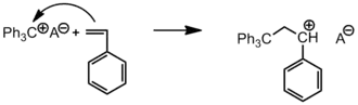 Stable carbenium ions are used to initiate chain growth of only the most reactive alkenes and are known to give well defined structures. These initiators are most often used in kinetic studies due to the ease of measuring the disappearance of the carbenium ion absorbance. Common carbenium ions are trityl and tropylium cations.[5]