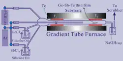 The CVD apparatus for Ge-Sb-Te thin film deposition is shown schematically to the right.