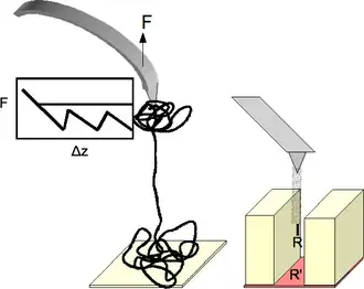 - ↑ Zlatanova, J.; Lindsay, S. M.; Leuba, S. H. (2000). "Single molecule force spectroscopy using the atomic force microscope". Prog. Biophys. Mol. Biol. 74 (1–2): 37–61. doi:10.1016/S0079-6107(00)00014-6. PMID 11106806.