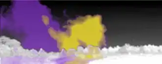 Atmospheric windows in the infrared spectrum are also employed to perform chemical imaging remotely. In these spectral regions the atmospheric gases (mainly water and CO2) present low absorption and allow infrared viewing over kilometer distances. Target molecules can then be viewed using the selective absorption/emission processes described above. An example of the chemical imaging of a simultaneous release of SF6 and NH3 is shown in the image.