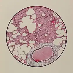 Chlorine required a concentration of 1,000 parts per million to be fatal, destroying tissue in the lungs, likely through the formation of hypochlorous and hydrochloric acids when dissolved in the water in the lungs.[26] Despite its limitations, chlorine was an effective psychological weapon—the sight of an oncoming cloud of the gas was a continual source of dread for the infantry.[27]