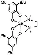 The mechanochemical activation of germanium described above can be used with a variety of auxiliary amine-based ligands and not just pyridine as used in the syntheses above. Uni-dentate ligands such as N-methyl imidazole can be used to create a trans-disposed octahedral germanium product, isostructural to the complexes of both the catechol and ortho-quinone that contain pyridine. However, chelating ligands can be used to form the product with nitrogens cis to each other. For example, in a reaction using tetramethylethylenediamine as a chelating bi-dentate diamine affords the cis- product with catechol ligands at the other octahedral binding sites. More research as additionally been done to show that the nitrogen-containing ligands can be biologically active ones which operate at very low reduction potentials. This makes the germanium complexes with those ligands easily reducible and highly nucleophilic, making substitution and activation even easier.[8]