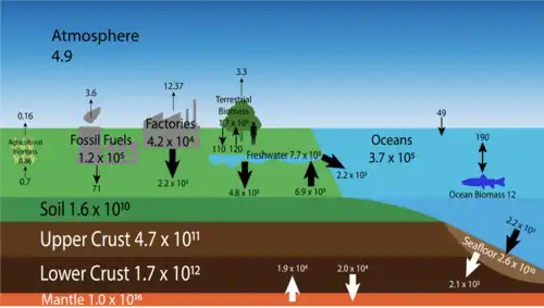- ↑ Rauch, Jason N.; Pacyna, Jozef M. (2009). "Earth's global Ag, Al, Cr, Cu, Fe, Ni, Pb, and Zn cycles". Global Biogeochemical Cycles. 23 (2): GB2001. Bibcode:2009GBioC..23.2001R. doi:10.1029/2008GB003376.