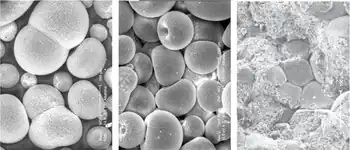 - ↑ For the raw material grinding, big mills (with an installed power of up to a 1 MW) are used to reduce the particle size of the slip but the most power is lost just to increase the temperature of the slip itself. For the drying of the slip, big spray driers are used with up to 500 KW electrical power and 15.000.000 Kcal/h of thermal power : 80% of the thermal capacity of the machine is lost at the chimney with not a negligible percentage of the powder itself lost in the environment. For the forming of the powder, big presses (up to 7.500 ton of force and 250 KW of installed power) are used but only 5% of this energy is contained in the compacted final product. In the following step of drying and sintering, big burners with a consumption of 10.000.000 Kcal/h are used but most of the energy is wasted at the chimney. A big volume of waste glaze is also produced along the glazing line and only a little can be recycled in the plant itself. Even a small increase of the mechanical strength of the ceramic body would lead to a reduction in the weight of the ceramic article with a deepreduction of the above pollution effects.