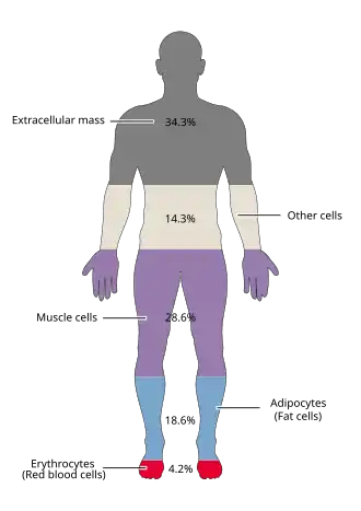 - ↑ Bianconi E, Piovesan A, Facchin F, Beraudi A, Casadei R, Frabetti F, et al. (2013-11-01). "An estimation of the number of cells in the human body". Annals of Human Biology. 40 (6): 463–471. doi:10.3109/03014460.2013.807878. ISSN 0301-4460. PMID 23829164.