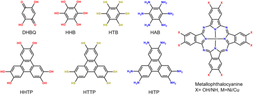 - ↑ Sheberla, Dennis; Sun, Lei; Blood-Forsythe, Martin A.; Er, Süleyman; Wade, Casey R.; Brozek, Carl K.; Aspuru-Guzik, Alán; Dincă, Mircea (2014-06-25). "High Electrical Conductivity in Ni3(2,3,6,7,10,11-hexaiminotriphenylene)2, a Semiconducting Metal–Organic Graphene Analogue". Journal of the American Chemical Society. 136 (25): 8859–8862. doi:10.1021/ja502765n. ISSN 0002-7863. PMID 24750124. S2CID 5714037.