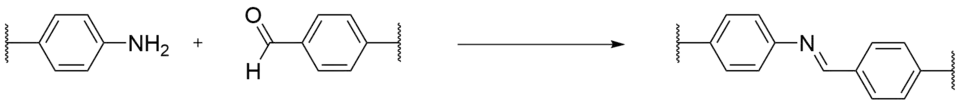 Most of the approaches currently used to synthesize CMPs must be carried out under anhydrous and oxygen-free environments due to the presence of metal catalysts. Due to the use of metal catalysts, polymers inevitably have trace metals present.[11] Reactions, such as the Schiff base reaction, have garnered much attention in that the reactions are metal free. In Schiff base, amine based monomers and aldehyde containing monomers undergo a reaction to create the repeat unit for CMPs. Schiff base is a preferred metal free method due to industrial scale cheap monomers containing multiple aldehyde functional groups. Another benefit of Schiff base is nitrogen is produced in creating CMPs, which could be beneficial for many applications.[12]
