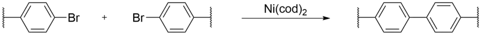 In Yamamoto coupling, carbon-carbon bonds of aryl halogenide compounds are formed via mediation from a transition metal catalyst, most commonly bis(cyclooctadiene)nickel(0), often written as Ni(cod)2. An advantage to Yamamoto coupling is only a single halogen functionalized monomer is required, leading to diversity in monomer species, as well as a simple reaction procedure. While most research in CMPs focus on controlling pore size and surface area, the lack of flexibility in the monomers used in Yamamoto couplings give way to free volumes and porosity in CMPs.[9] Only recently have controlled pore size and surface area CMPs via Yamamoto coupling been reported.[2] Ifzan et al also recently reported contra-prepositionally substituted [6]CMP using Yamamoto coupling reaction.[10]