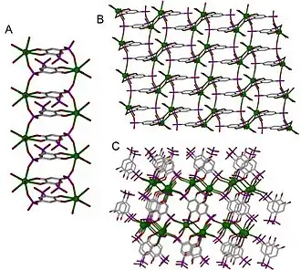 - ↑ Robin, A. Y.; Fromm, K. M. (2006). "Coordination polymer networks with O- and N-donors: What they are, why and how they are made". Coord. Chem. Rev. 250 (15–16): 2127–2157. doi:10.1016/j.ccr.2006.02.013.