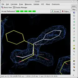- ↑ P. Emsley; K. Cowtan (2004). "Coot: model-building tools for molecular graphics". Acta Crystallographica. D60 (12): 2126–2132. doi:10.1107/s0907444904019158. PMID 15572765.