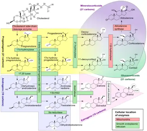 ![]() Cortisol (hydrocortisone), a corticosteroid with both glucocorticoid and mineralocorticoid activity and effects. | |
