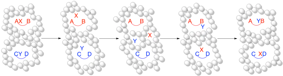 In chemistry, a crossover experiment is a method used to study the mechanism of a chemical reaction. In a crossover experiment, two similar but distinguishable reactants simultaneously undergo a reaction as part of the same reaction mixture. The products formed will either correspond directly to one of the two reactants (non-crossover products) or will include components of both reactants (crossover products). The aim of a crossover experiment is to determine whether or not a reaction process involves a stage where the components of each reactant have an opportunity to exchange with each other.