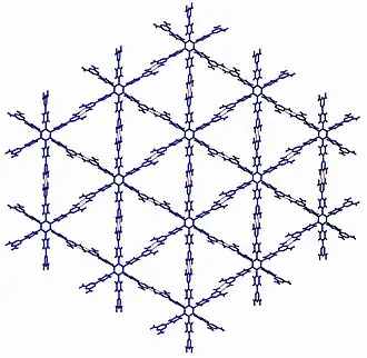 2D architectures (i.e., molecularly thick architectures) is a branch of crystal engineering.[11] The formation (often referred as molecular self-assembly depending on its deposition process) of such architectures lies in the use of solid interfaces to create adsorbed monolayers. Such monolayers may feature spatial crystallinity.[12][13] However the dynamic and wide range of monolayer morphologies ranging from amorphous to network structures have made of the term (2D) supramolecular engineering a more accurate term. Specifically, supramolecular engineering refers to "(The) design (of) molecular units in such way that a predictable structure is obtained"[14] or as "the design, synthesis and self-assembly of well defined molecular modules into tailor-made supramolecular architectures".[15]