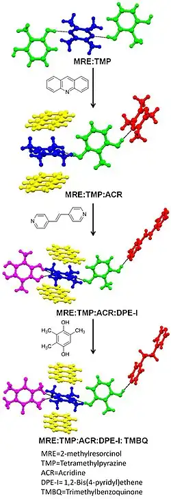 - ↑ Mukherjee, Arijit (2015-06-03). "Building upon Supramolecular Synthons: Some Aspects of Crystal Engineering". Crystal Growth & Design. 15 (6): 3076–3085. Bibcode:2015CrGrD..15.3076M. doi:10.1021/acs.cgd.5b00242. ISSN 1528-7483.