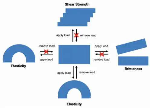 Designing a crystalline material with targeted properties requires an understanding of the material's molecular and crystal features in relation to its mechanical properties.[22] Four mechanical properties are of interest for crystalline materials: plasticity, elasticity, brittleness, and shear strength).[21]