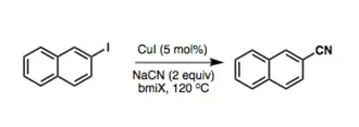 - ↑ Wu, Jeff (2002). "Catalytic Rosenmund–von Braun reaction in halide-based ionic liquids". Tetrahedron Letters. 43 (3): 387–389. doi:10.1016/s0040-4039(01)02168-2.