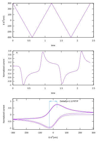 - ↑ Nicholson, R.S. (1965). "Theory and Application of Cyclic Voltammetry for Measurement of Electrode Reaction Kinetics". Anal. Chem. 37 (11): 1351–1355. doi:10.1021/ac60230a016.
