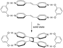 - ↑ L. R. MacGillivray; J. L. Reid; J. A. Ripmeester (2000). "Supramolecular Control of Reactivity in the Solid State Using Linear Molecular Templates". J. Am. Chem. Soc. 122 (32): 7817–7818. doi:10.1021/ja001239i.